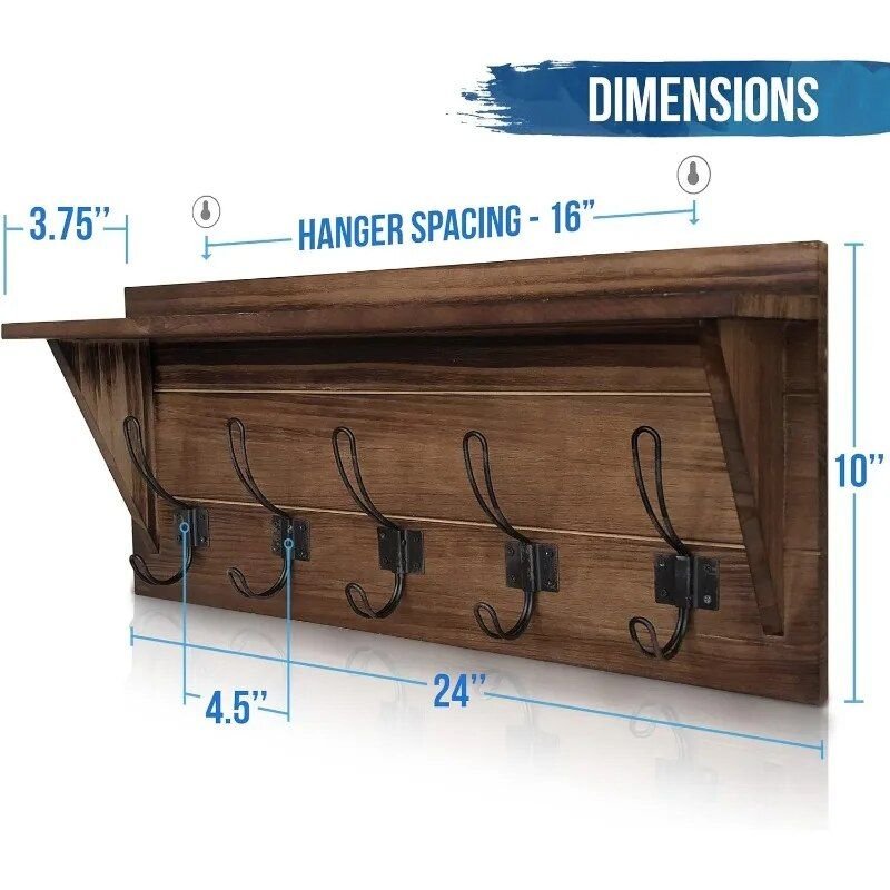 Not just a coat rack—this versatile shelf offers a flat 3.75-inch surface, perfect for organizing keys, wallets, or displaying decorative items like succulent plants and candles. The inlayed hanging hardware ensures stability and easy installation, making it a hassle-free addition to your space.