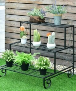 Enhance your space with the 3 Tier Outdoor Metal Plant Stand Flower Planter Garden Display Rack. Elevate your plants, elevate your style!