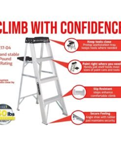 Whether you’re touching up paint in the living room, changing a lightbulb, or completing home renovation projects, our 4′ Folding Aluminum Step Ladder is your reliable partner. Designed for both the seasoned professional and the DIY enthusiast, this ladder combines lightweight portability with the strength you can trust. With a 250-pound capacity, it supports not just your weight but also your tools, making every task safer and more efficient.