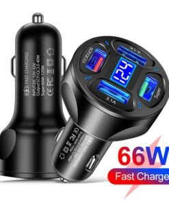 Never get stuck with a dying phone again! Introducing our 66W 4-Port Fast Charging USB Car Charger – designed to ensure your devices remain charged and ready wherever your travels take you. With its sleek and compact design, you can easily plug it into your car and charge multiple devices simultaneously.