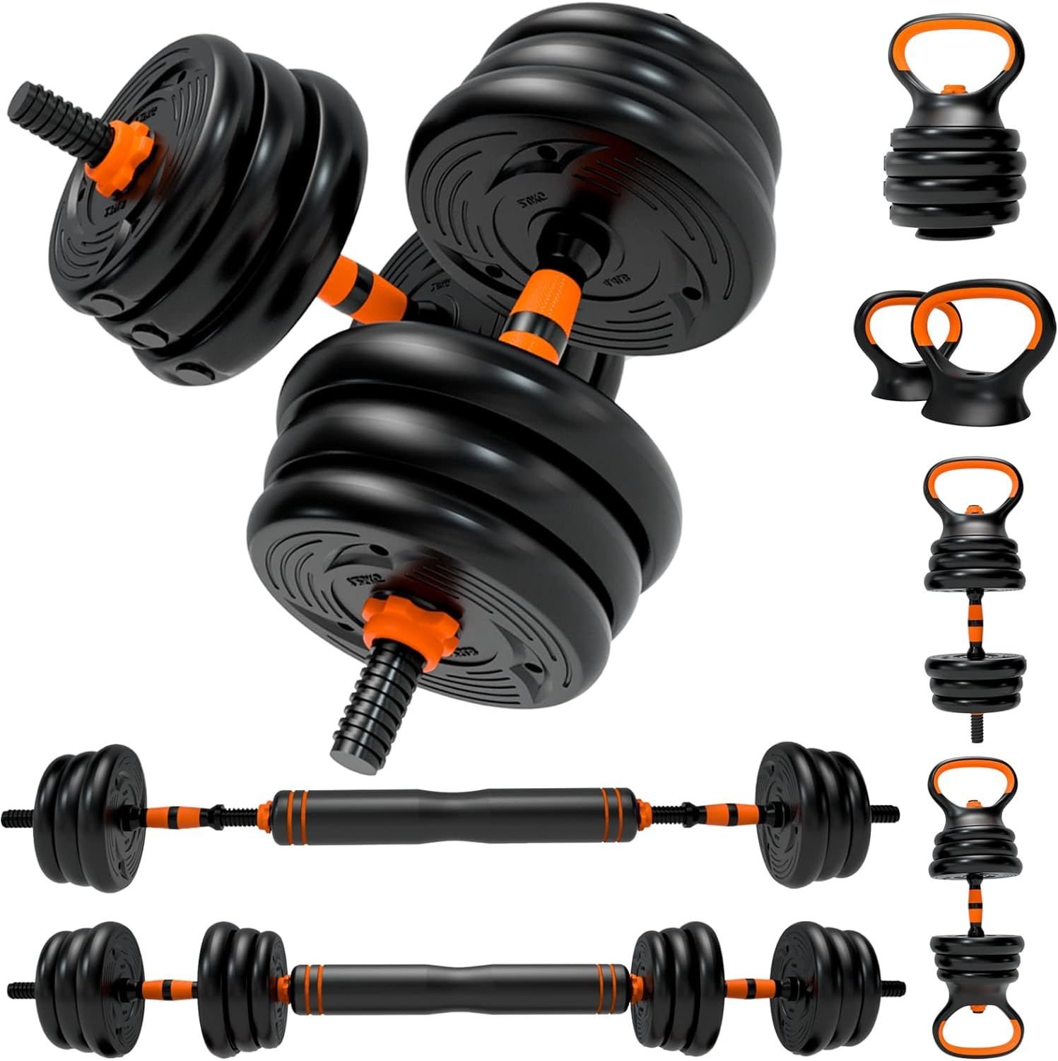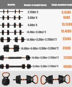 Elevate your indoor workouts with our Adjustable Dumbbells Weights Set 44lbs, a 6-in-1 fitness solution designed to cater to all your strength training needs. From dumbbells to barbells and kettlebells, this set is your ticket to a comprehensive workout targeting the abdomen, arms, shoulders, back, and chest.