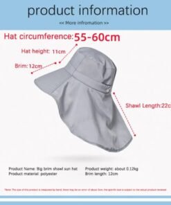 Our bucket hat is crafted from high-quality polyester, ensuring durability and long-lasting wear. The hat’s dimensions are thoughtfully designed with a hat height of 11cm, an adjustable circumference of 55-60cm (21.7-23.6 inches), and a brim length of 12cm, complemented by a 22cm shawl for maximum sun protection. Its lightweight construction, weighing about 0.14kg, ensures you can enjoy your day without feeling weighed down.