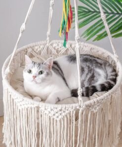 Our Boho cat bed is not just a piece of pet furniture; it’s a statement of style and comfort. Its beige color and macrame design add a touch of elegance to any decor, while the included cotton pad ensures your cat’s ultimate comfort. Whether for lounging or playing, this cat hammock caters to all your pet’s needs.
