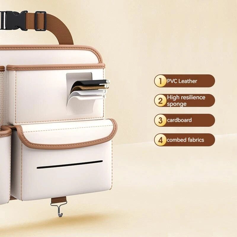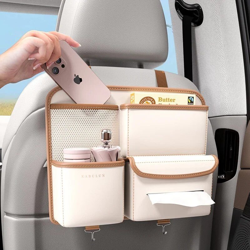 Introducing our Deluxe Car Seat Back Organizer—a game changer for car owners passionate about keeping their vehicle interiors tidy and clutter-free. Crafted from high-quality PU leather, this organizer not only ensures durability but also offers an elegant touch to your car’s aesthetics.