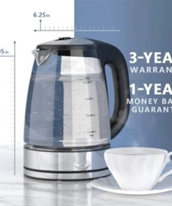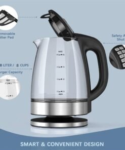 - Safe and Durable: Made with high-quality borosilicate glass, this kettle is scratch-resistant, BPA-free, and equipped with auto shut-off and boil-dry protection for your safety.