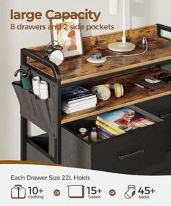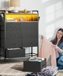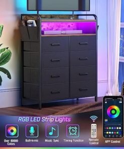 Modern 8-Drawer Dresser with LED Lights & Power Outlets